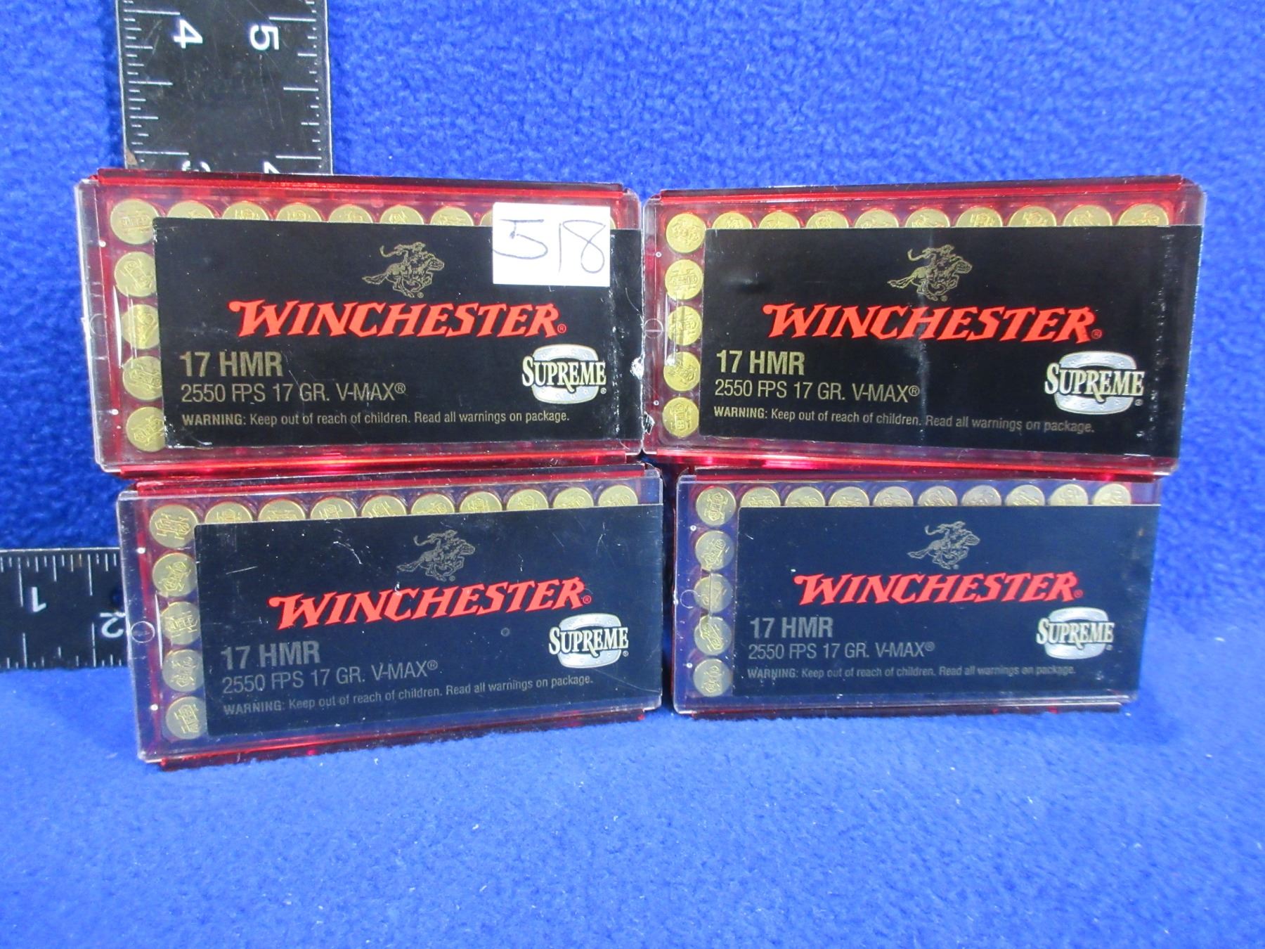 17 HMR 17gr V-Max Winchester (Pick Up or Ship by UPS Only) Cartridges - 4 Boxes of 50, 3 are still sealed