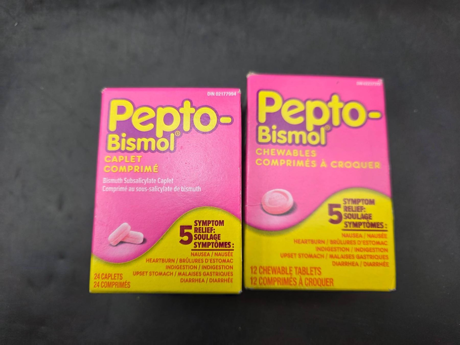 24 Caplets & 12 Chewable Pepto-Bismol for Digestive Symptoms Relief