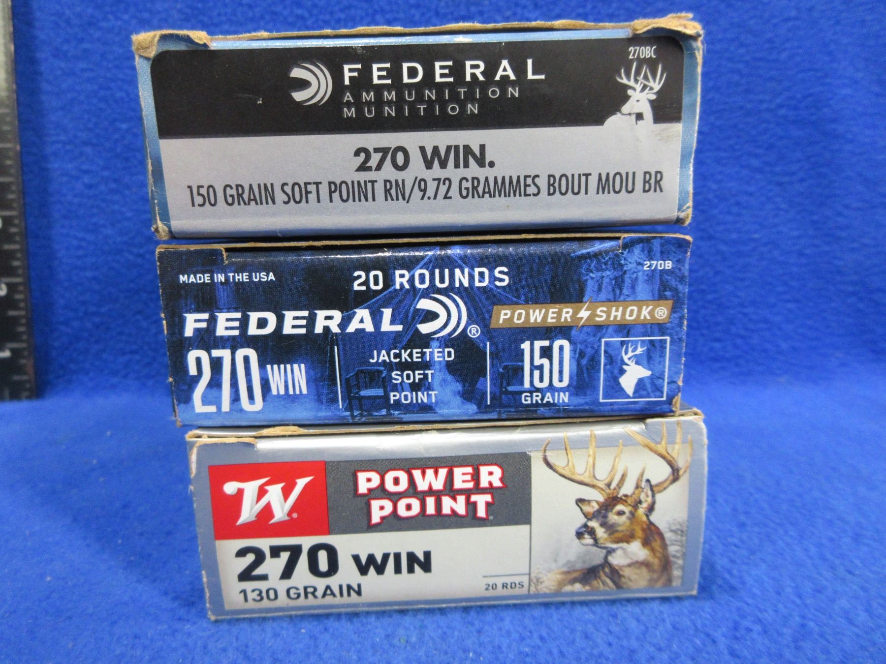 270 Win. Federal & Winchester Cartridges (Pick Up or Ship by UPS Only) - Box of 20 (Federal 150gr JSP), Box of 20 (Federal Mixed), Box of 14 + 6 Brass(Winchester 130gr PP)