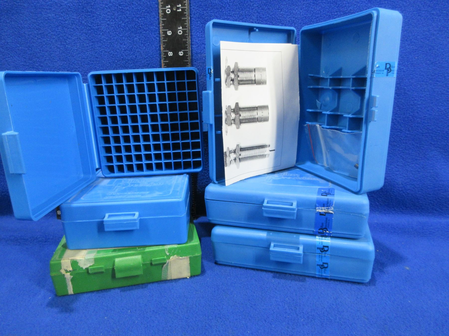 3 Empty Plastic Ammo Boxes and 3 Empty Die Boxes