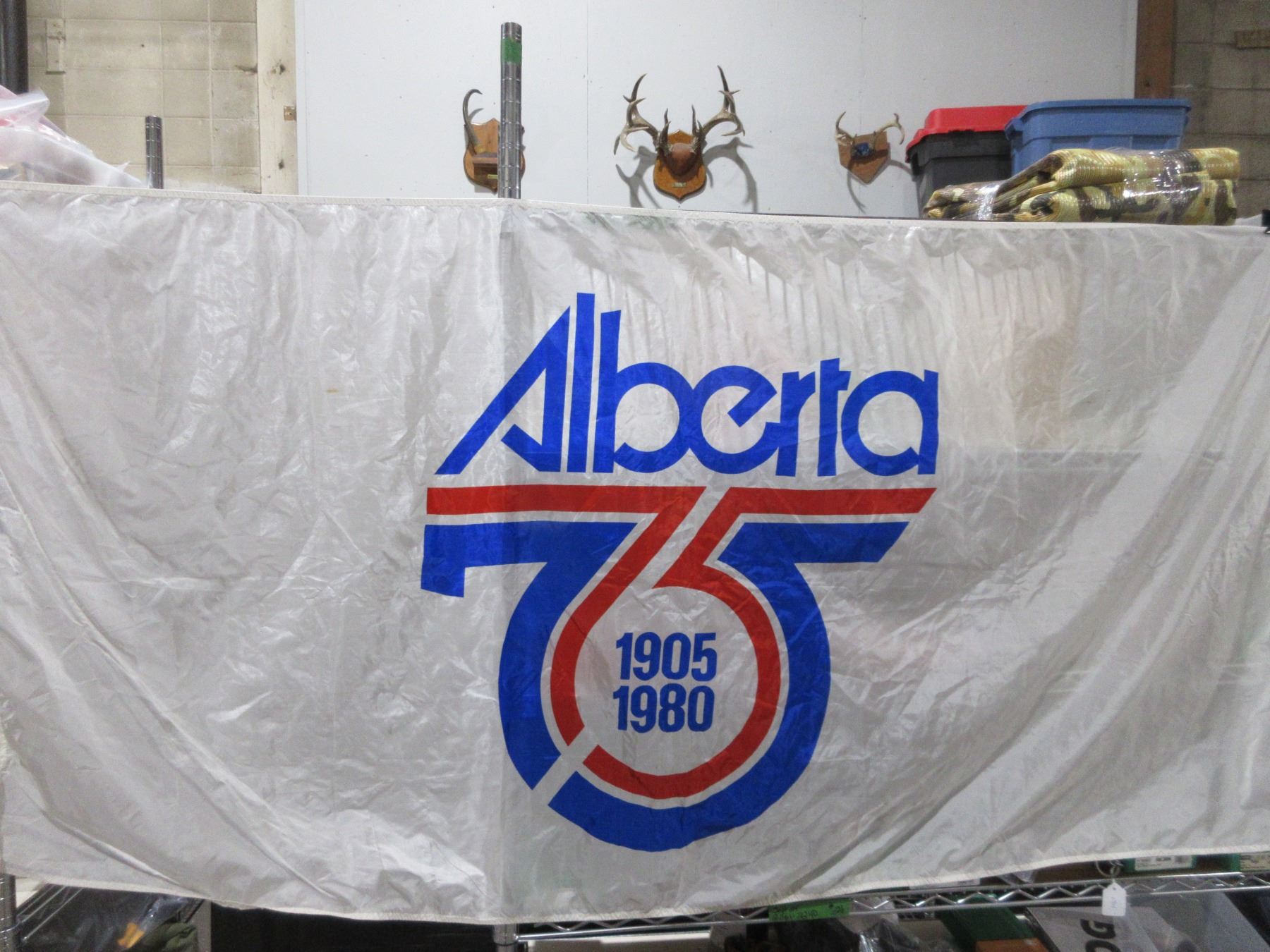 Alberta 75 Flag - 1905 - 3' x 6' Rope & Toggle - Appears to be Nylon. Has some minor spotting.