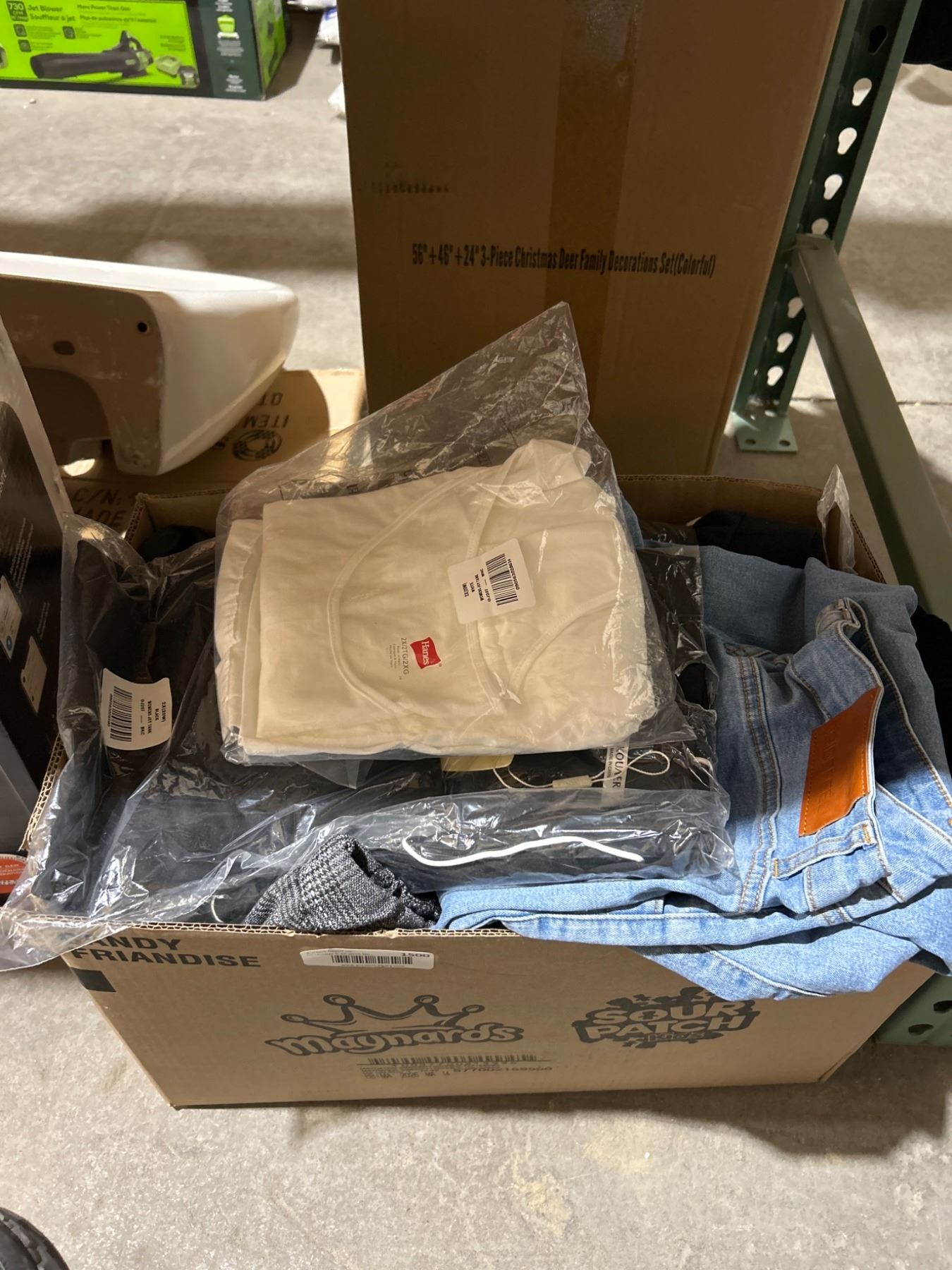 Box Lot of Assorted Clothing in men’s women’s and childrens styles