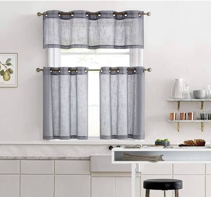 Lot of 3 – HLC.Me Lumino Faux Linen Curtain Panels 2 Pack with Grommets , Gray, 35×36 Inches