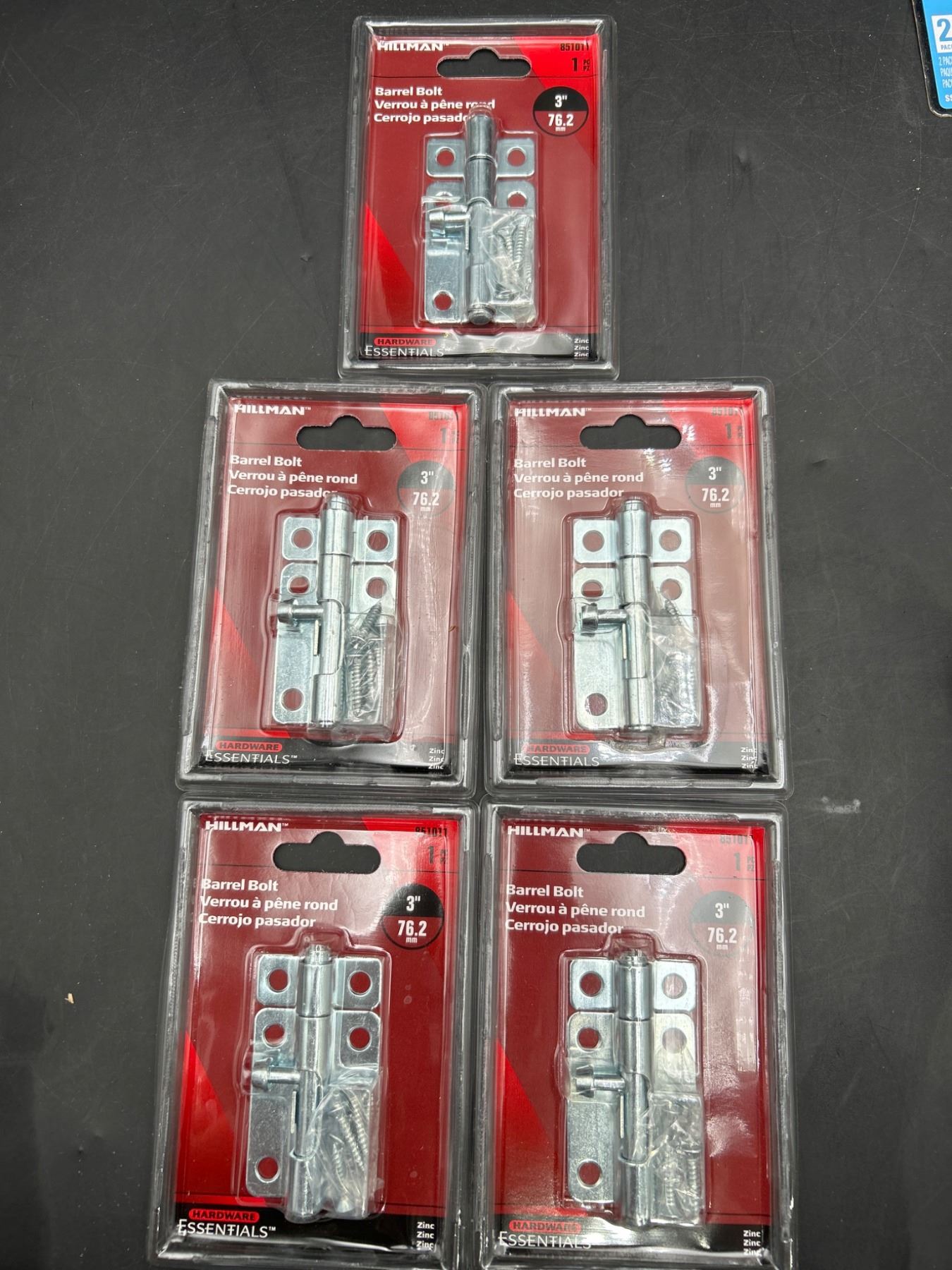 Lot of 5 – Hillman 3-Inch Barrel Bolt Zinc Plated