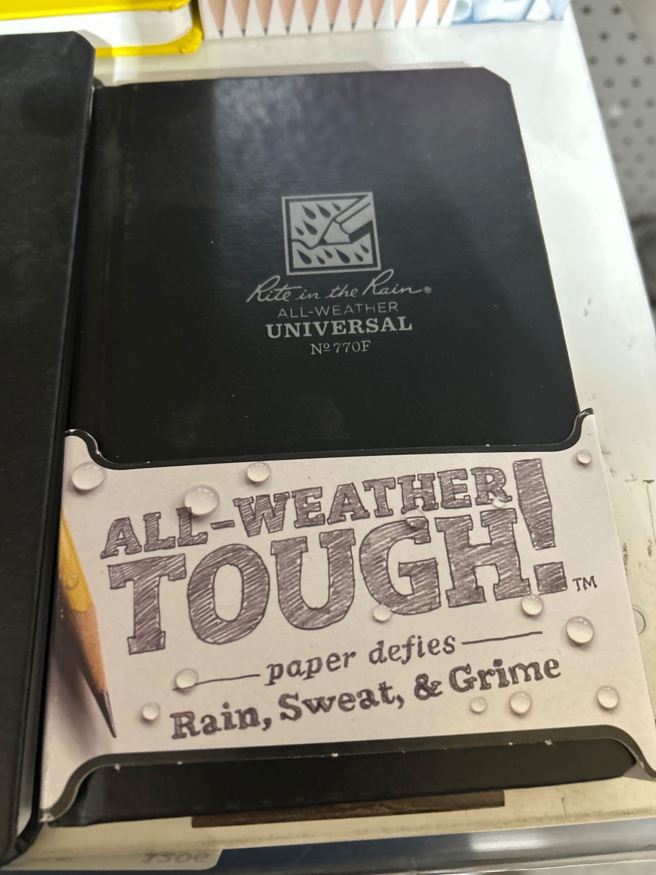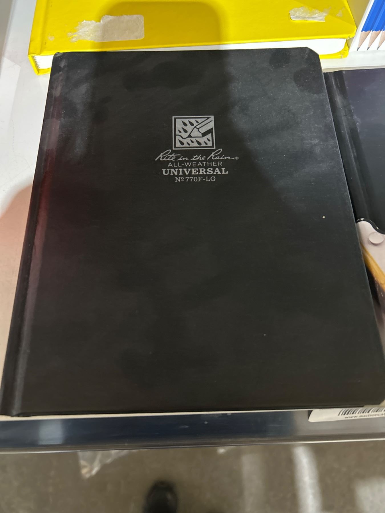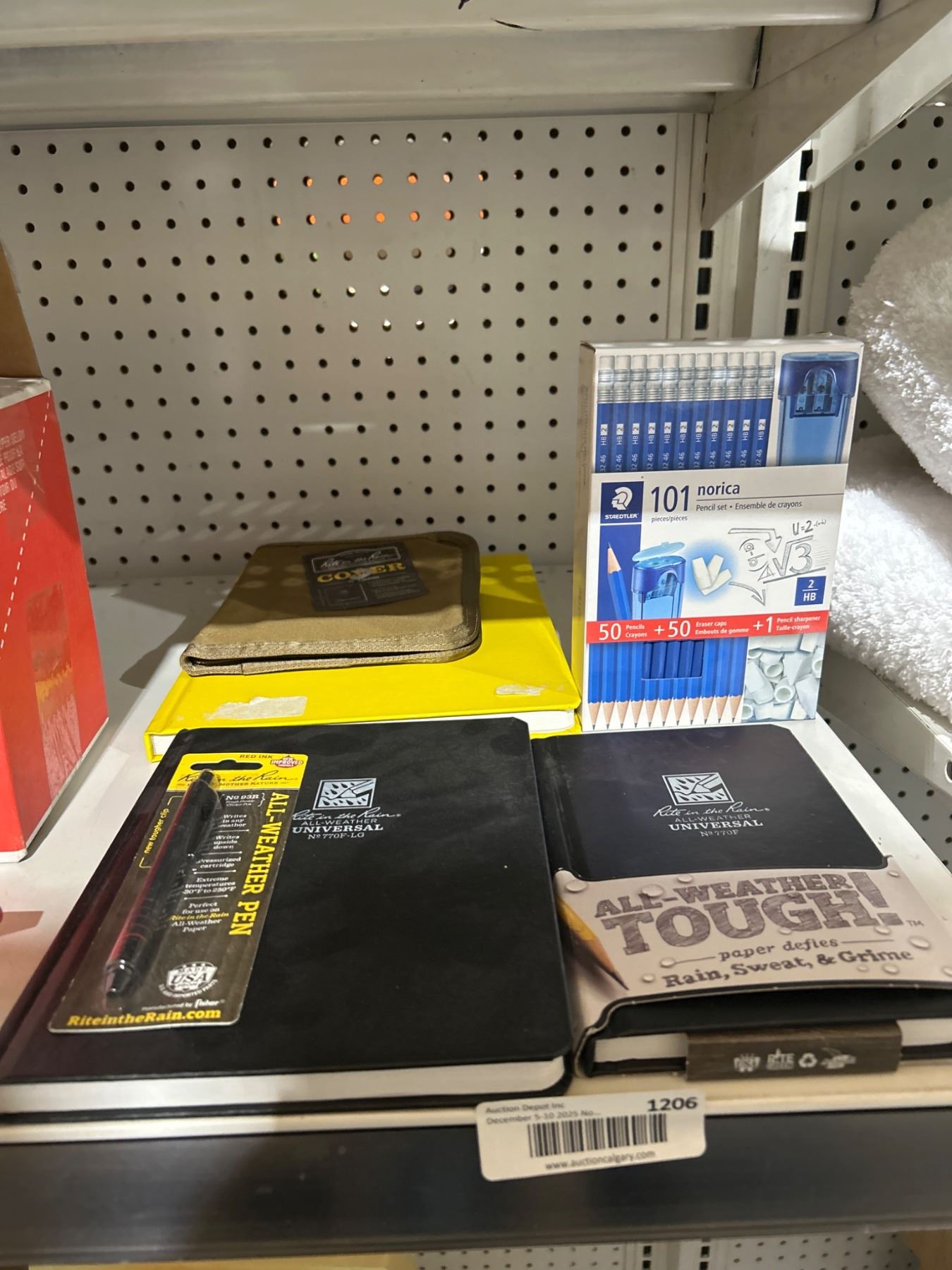 Lot of Rite in the Rain Writing Supplies Including Notebooks, Pen, and Cover