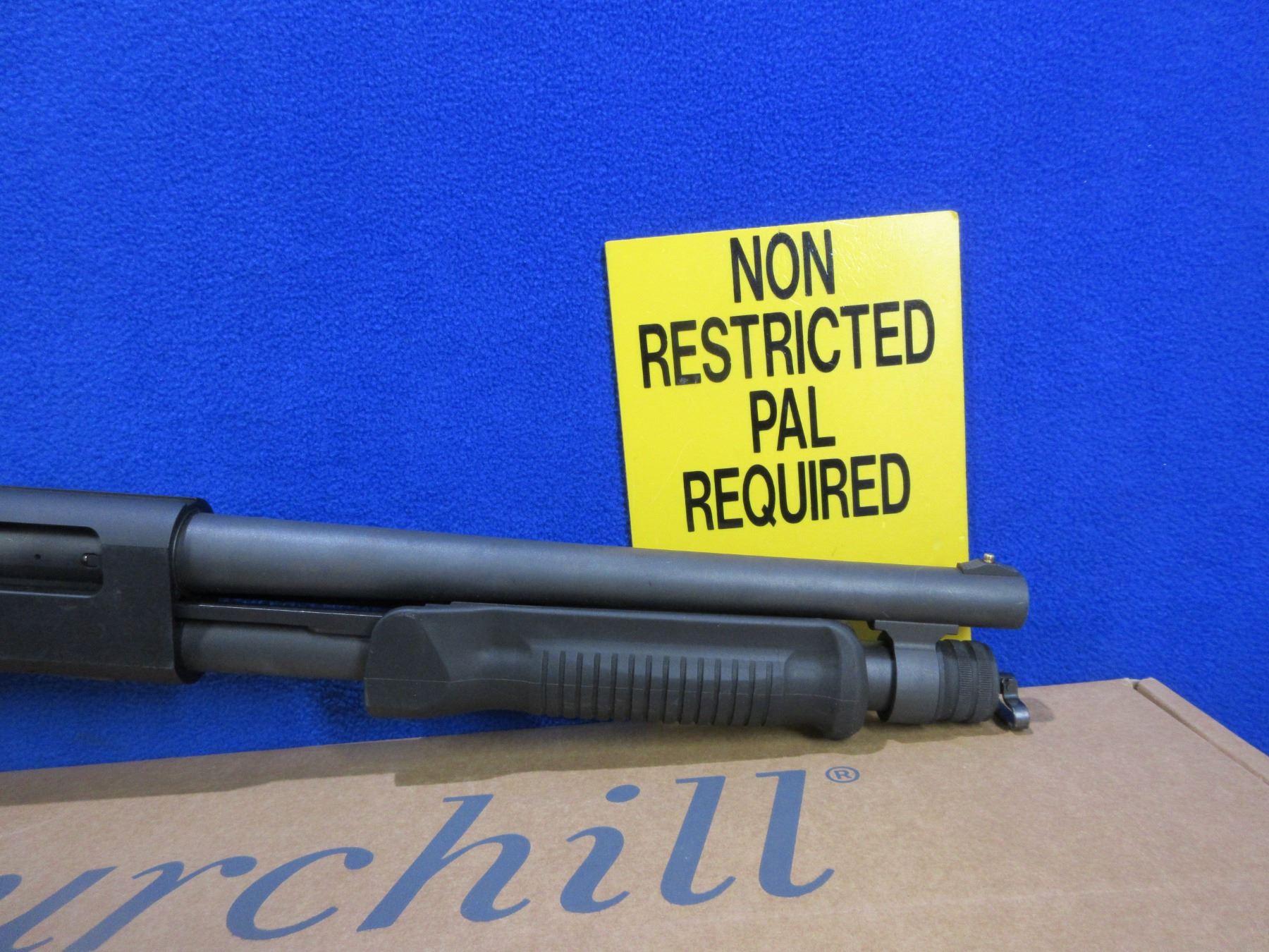 Non-Restricted - Akkar Churchill 612 in 12 Ga 3" - This is a pump action shotgun with tube magazine, action appears to be in good to very good working order. Barrel is 12.5", bore is good to very good, black finish is good, has bead front sight, synthetic stock is good to very good, synthetic forearm is good, length of pull is 14 1/4", rubber recoil pad good, comes with swivels, sling, manual and original box. Ser # 57-H22PT-011973