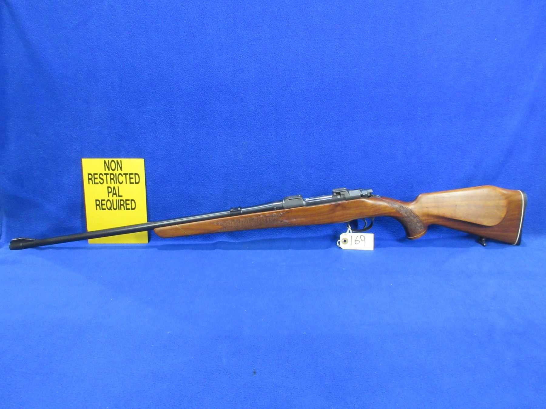 Non-Restricted - BRNO Model ZKK-601 in 308 Win - This is a bolt action rifle with floorplate magazine, action appears to be in good to very good working order. Barrel is 23 3/4", rifling is good to very good, bluing is good, sights are missing but has integral BRNO base and is drilled and tapped, stock is good with usage marks, length of pull is 13 1/4", butt plate good, comes with rear swivel and front swivel stud. Ser # 27917