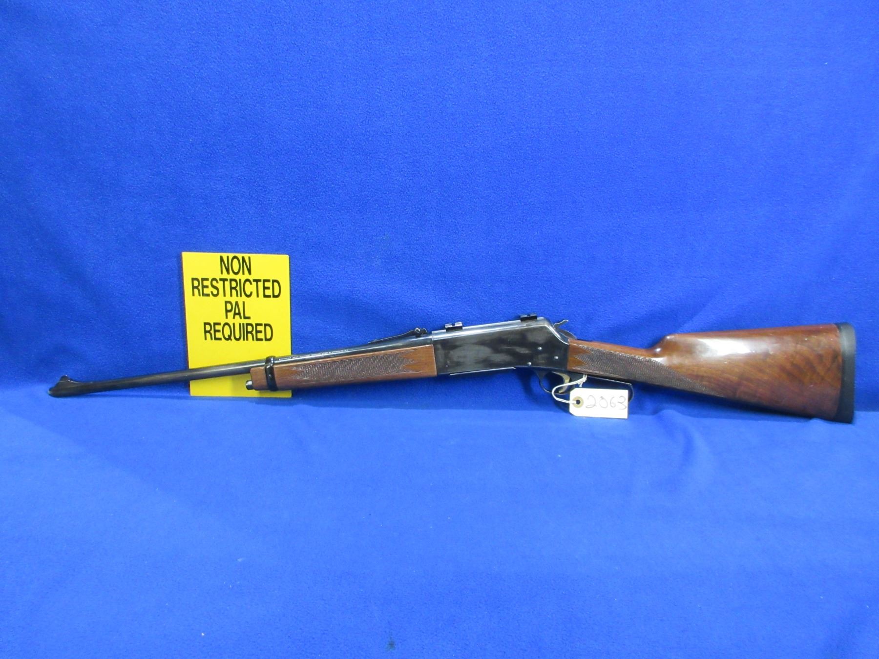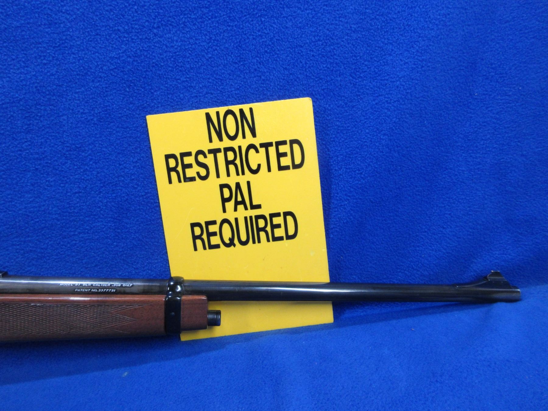 Non-Restricted - Browning BLR in 308 Win. - This is a lever action rifle with removable magazine, action appears to be in good to very good working order. Barrel is 20", rifling is good to very good, bluing is good but has large grey wear spots, has both sights and Weaver style bases, stock and forearm are good with usage marks, length of pull is 14", rubber recoil pad good. Ser # 11383PT227
