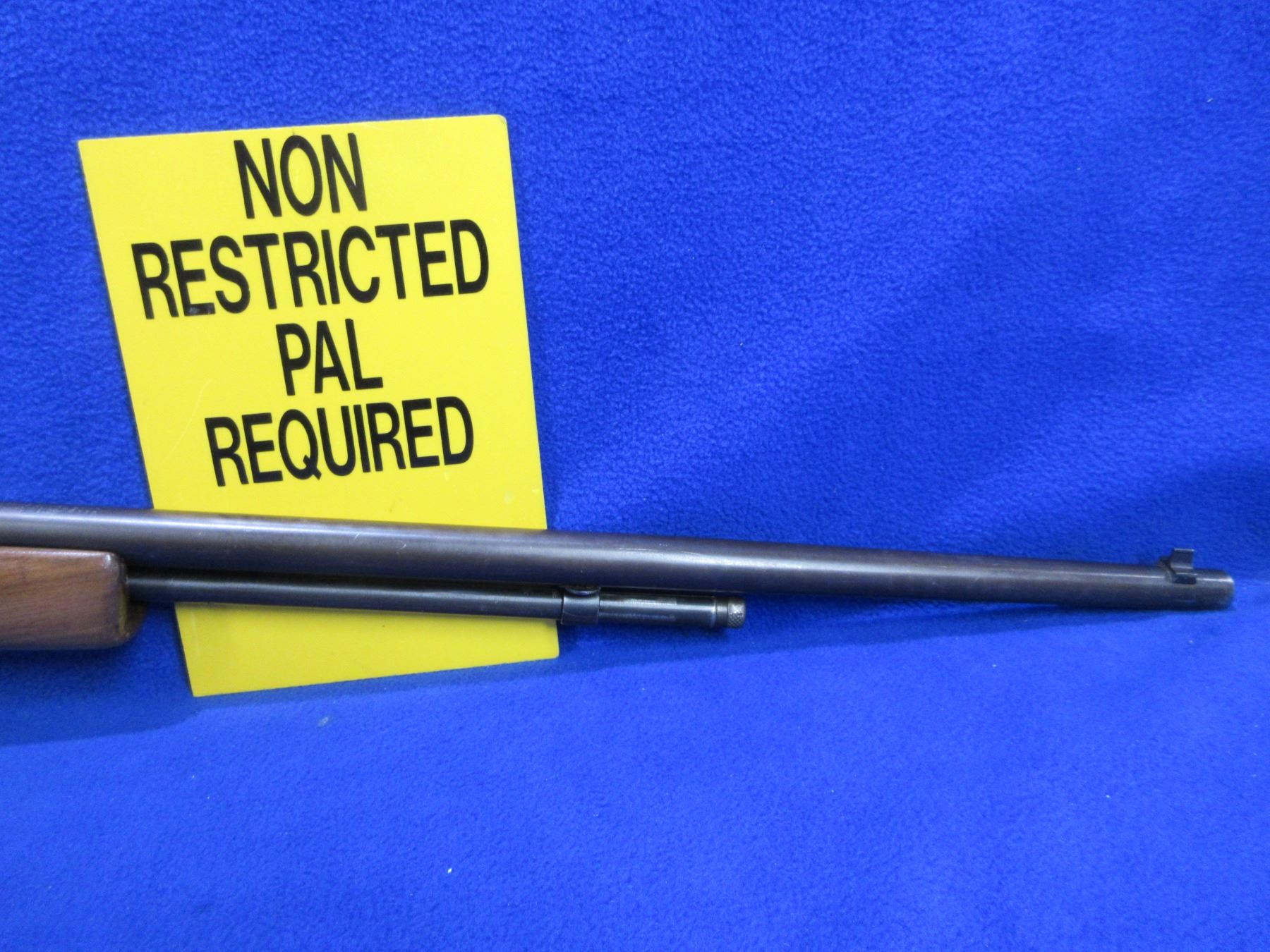 Non-Restricted - Cooey Model 60 in 22 S/L/LR - This is a bolt action rifle with tube magazine, action appears to be in good to very good working order. Barrel is 24", rifling is good to very good, bluing is turning brown, has both sights and Weaver Marksman 4x scope - appears cloudy - standard crosshair - obj lens appears chipped or cracked, stock is good to very good, length of pull is 13", metal butt plate pitted butt has been painted. Ser # None