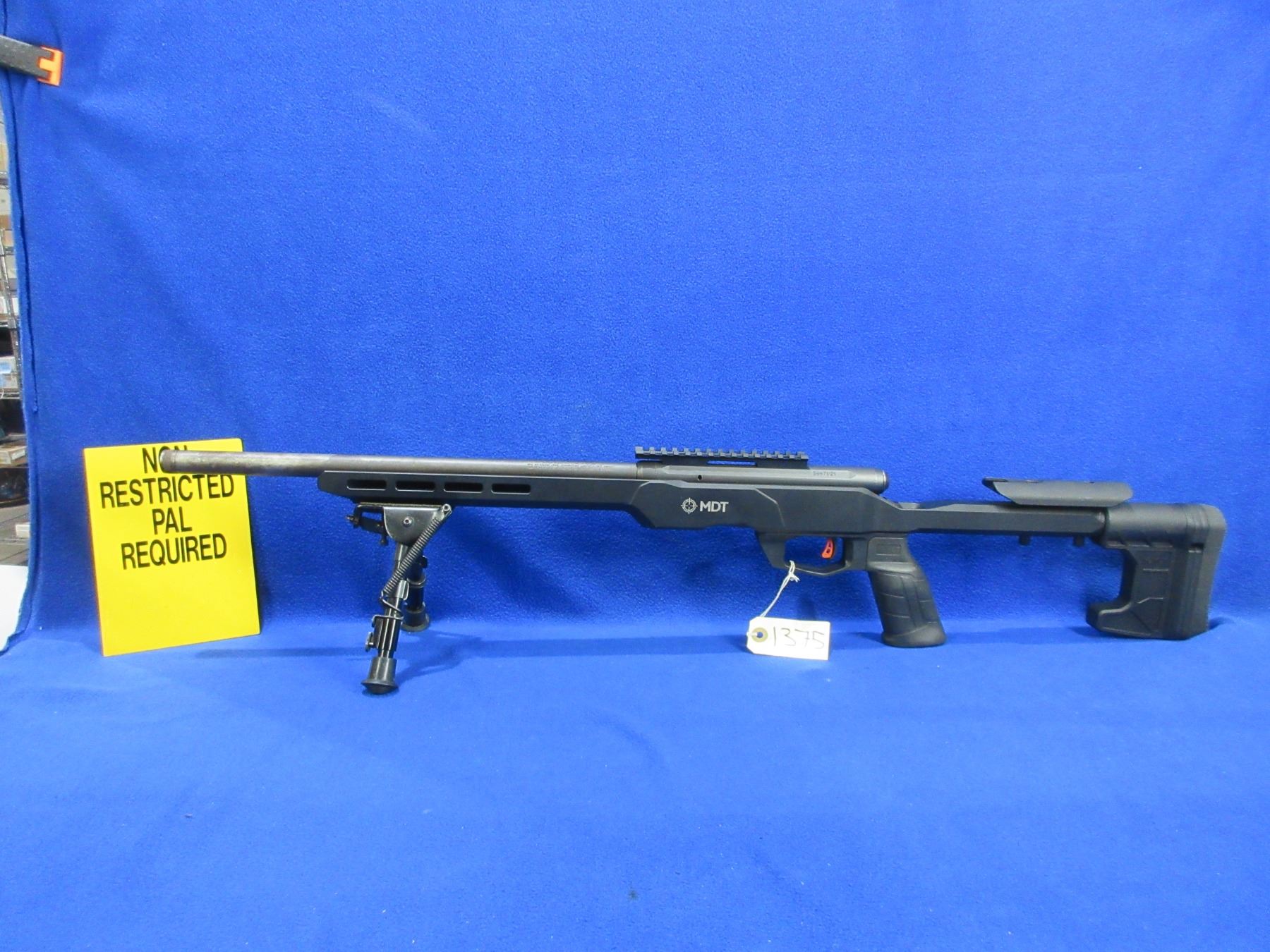 Non-Restricted - Savage Model B22 V in 22 LR - This is a bolt action rifle with removable rotary magazine and Savage AccuTrigger, action appears to be in very good working order. Heavy threaded barrel is 18" with flush cap, rifling is good to very good, bluing is good on action but is gone with light pitting on barrel, has no sights but has Picatinny rail, MDT stock is good to very good, length of pull is 13 3/4", rubber recoil pad good, comes with Harris 1A2 Ultralight bipod. Ser # 3987021
