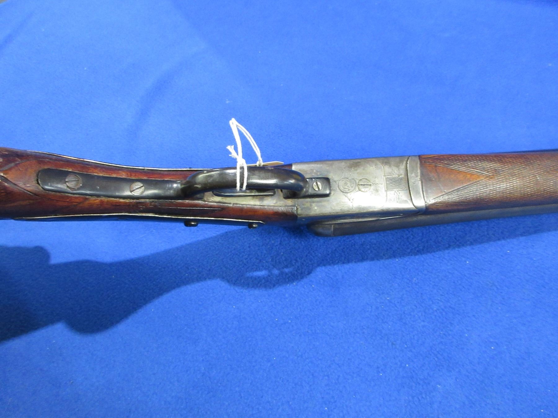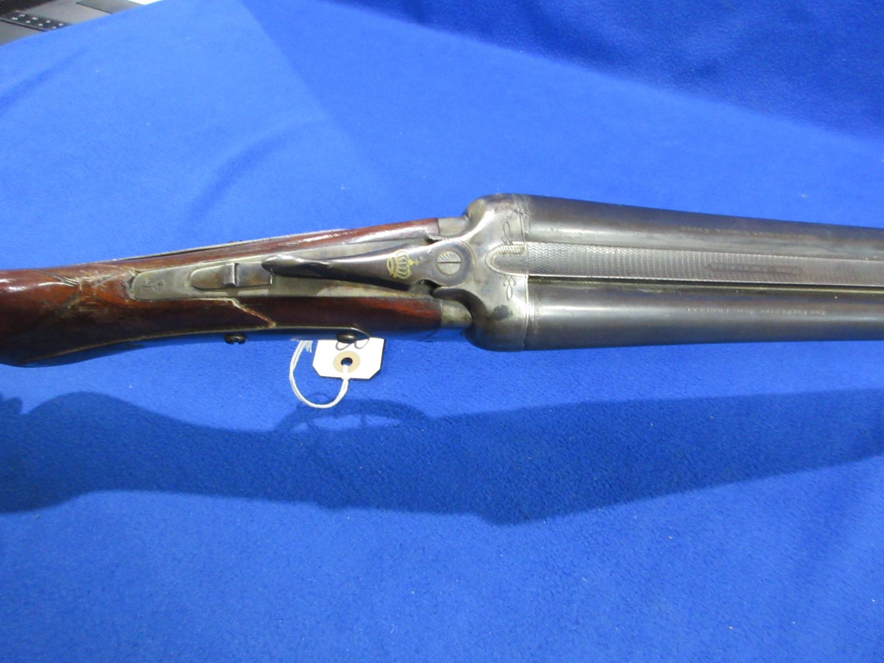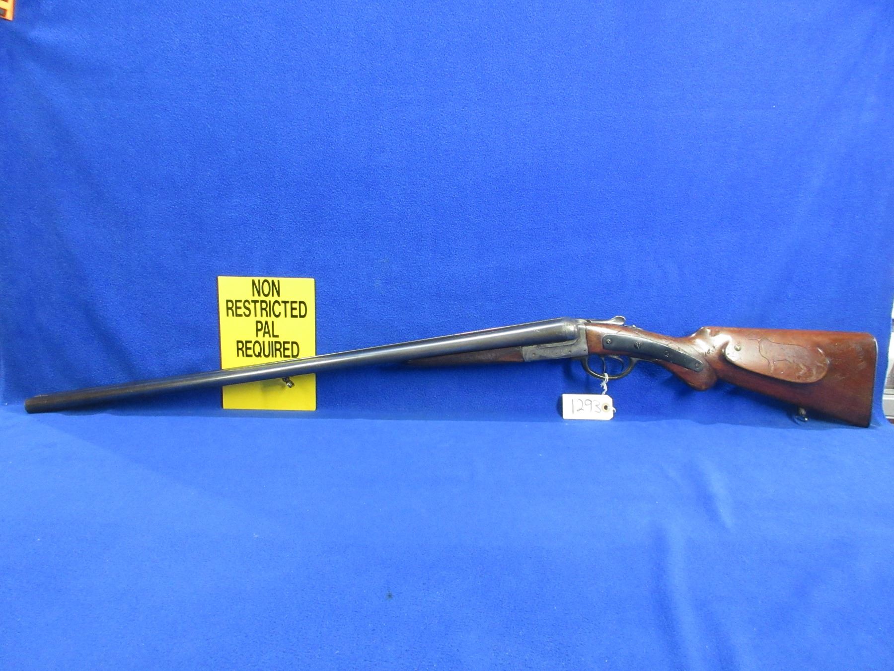 Non-Restricted - Wede-Excelsior in 12 Ga. 2 3/4" - This is a tip up SXS shotgun, action is tight and appears to be in working order. Barrels are 28 3/4", bores are good, bluing is good but starting to turn grey, has bead front sight, stock was broken and has a major crack repair, forearm is good, length of pull is 14 1/4", butt plate, comes with swivels. Ser # 47765