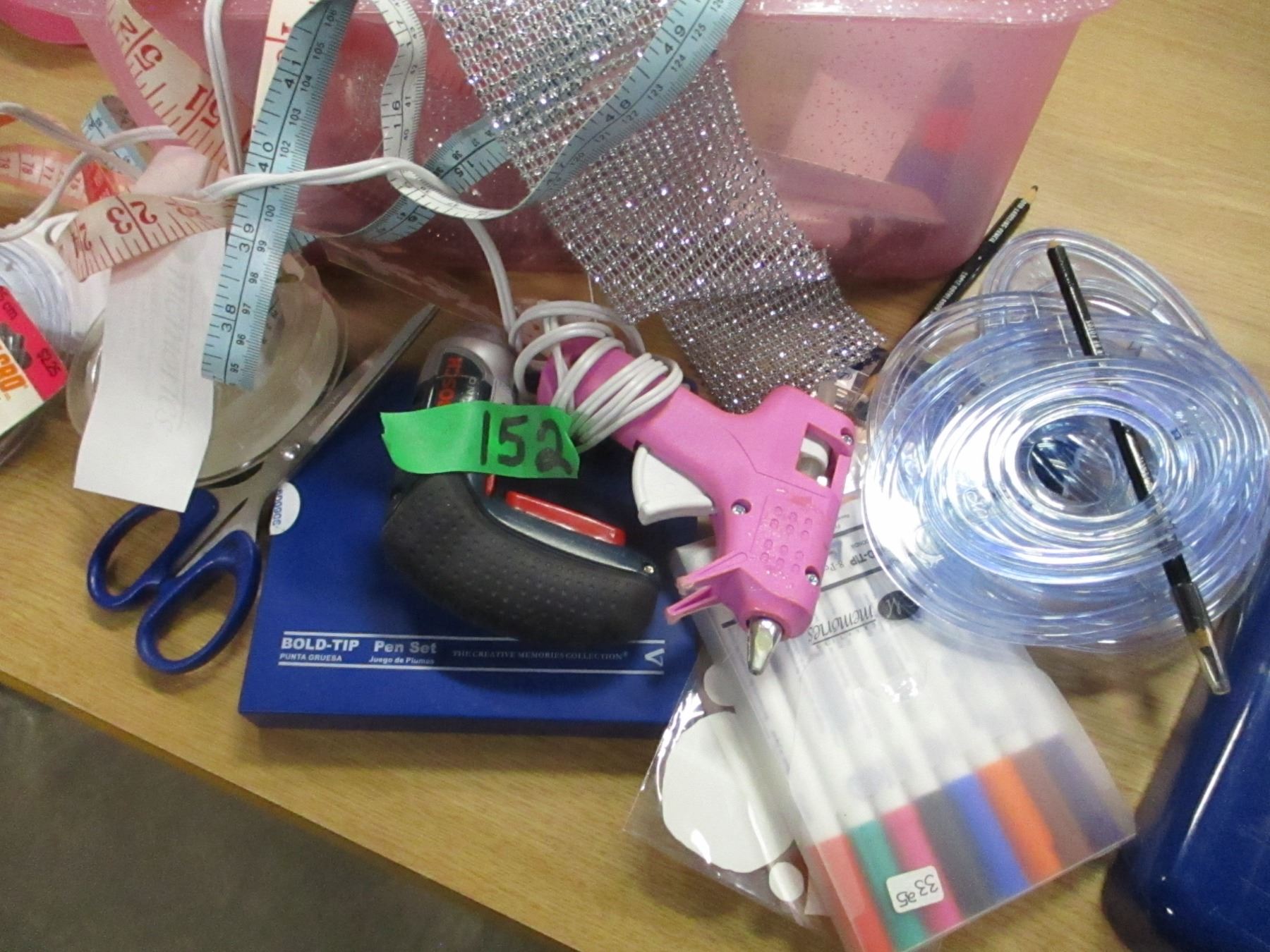 PLASTIC CASE C/W CRAFT SUPPLIES, SCISSORS, GLUE GUN, ETC