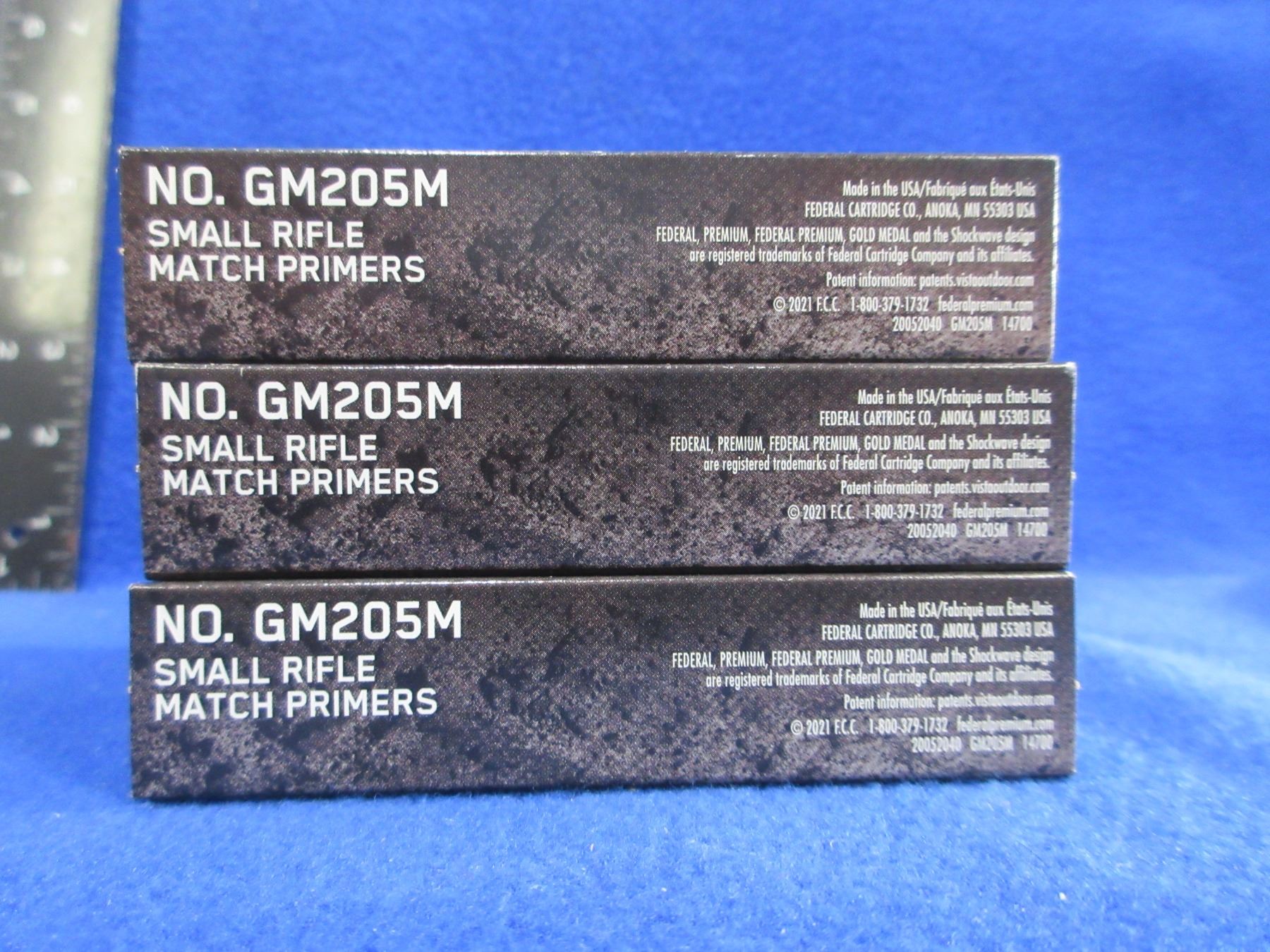 Small Rifle Match Primers No. GM205M (Pick Up or Ship by UPS Only) Federal - 3 Boxes of 100