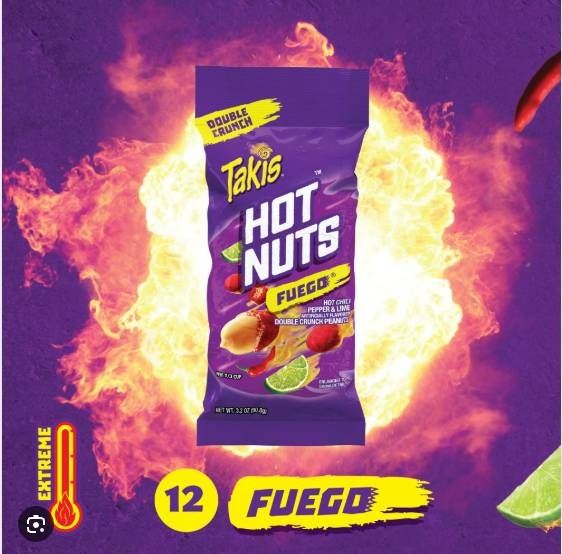 Takis Hot Nuts Fuego 90g, Made in Mexico, 12x80g