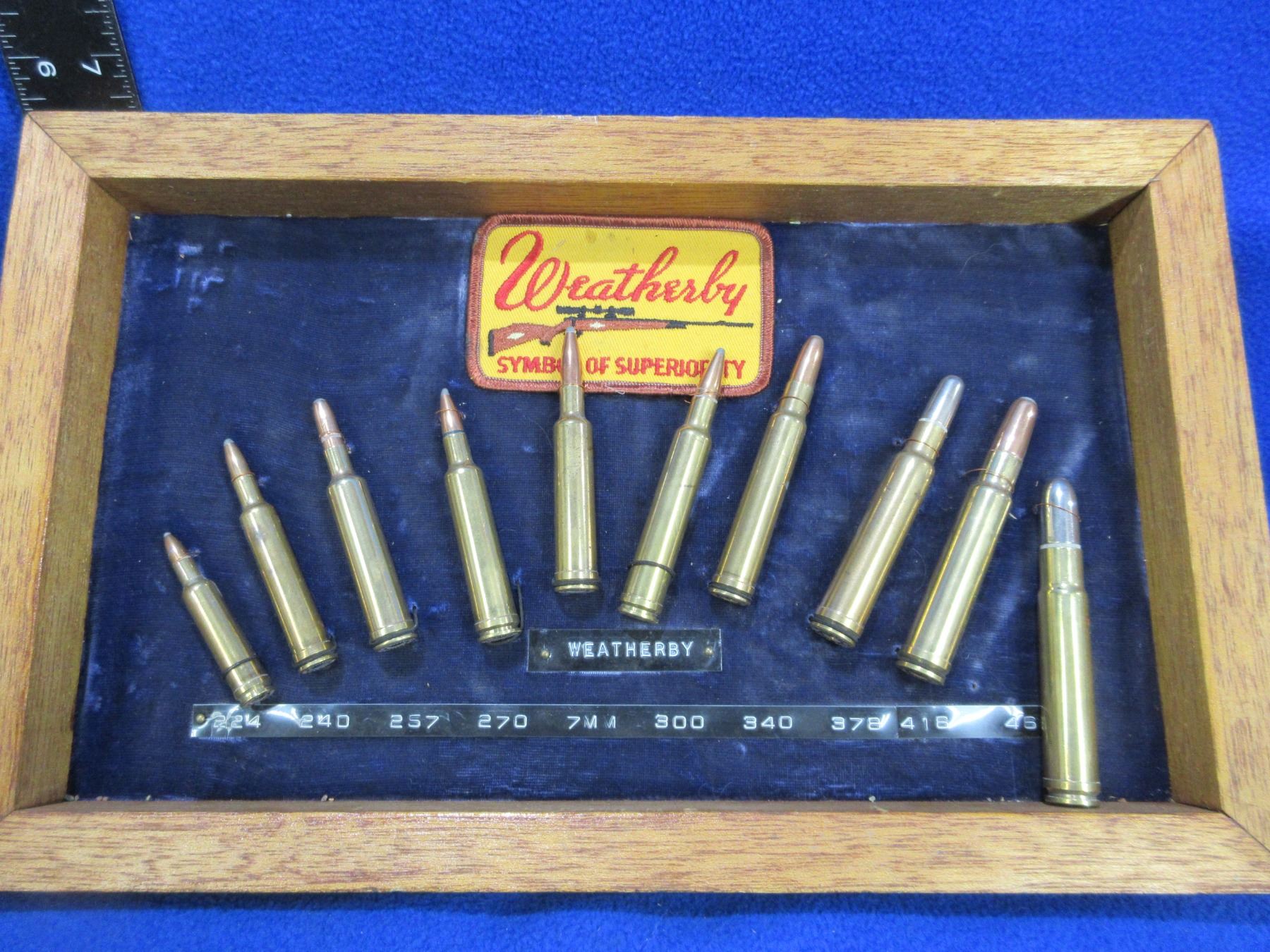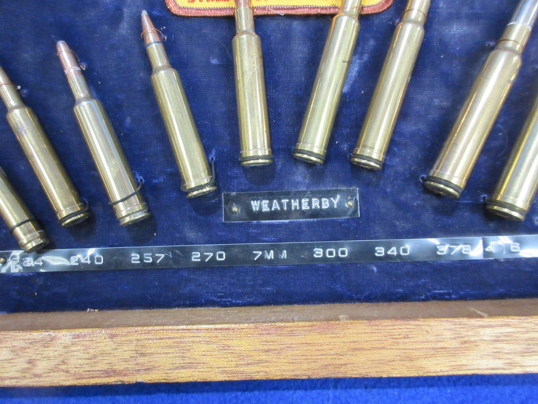 Weatherby Magnum Cartridge Board (Pick Up or Ship by UPS Only) - 10 Cartridges from .224 Wby Mag to 460 Wby Mag - 14 1/2" x 8 3/4"